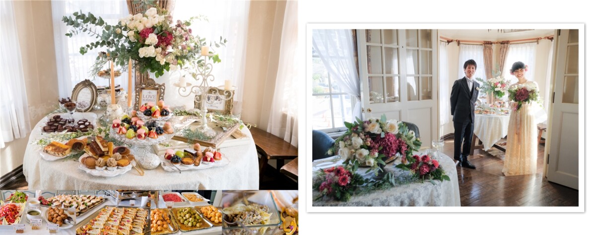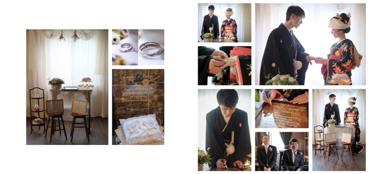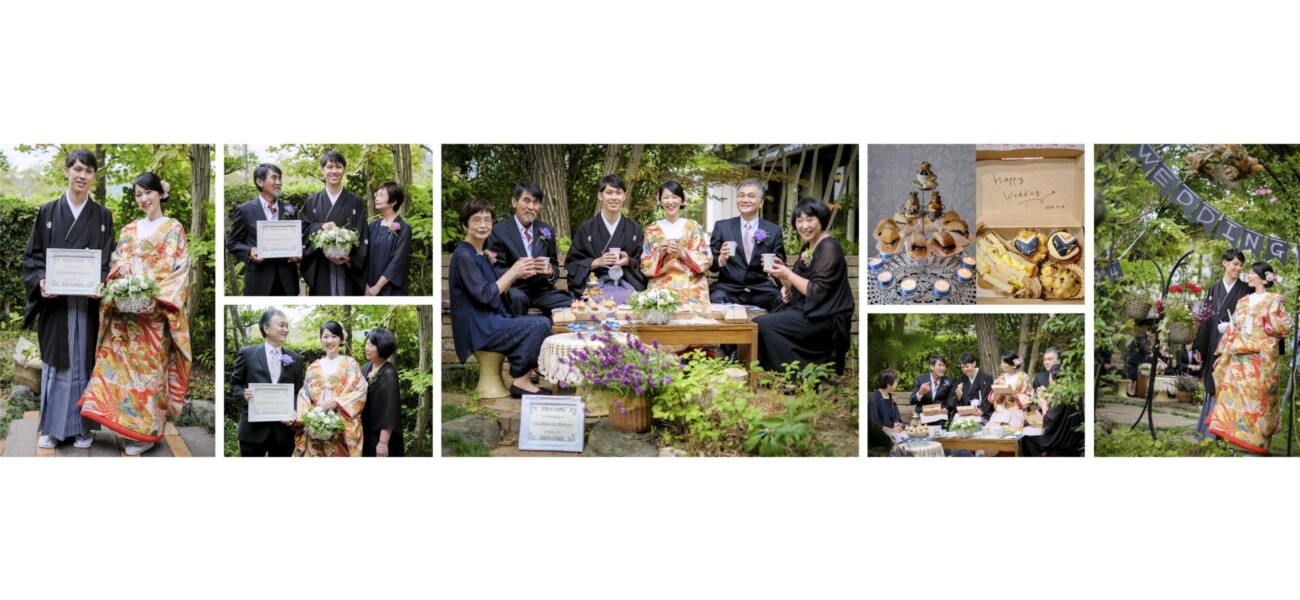 スタジオ「未知フォト茶論」で、撮影だけでなく、小さな結婚セレモニーと披露宴がわりのティーパーティーをご家族と一緒に楽しんでいただけるプランです。