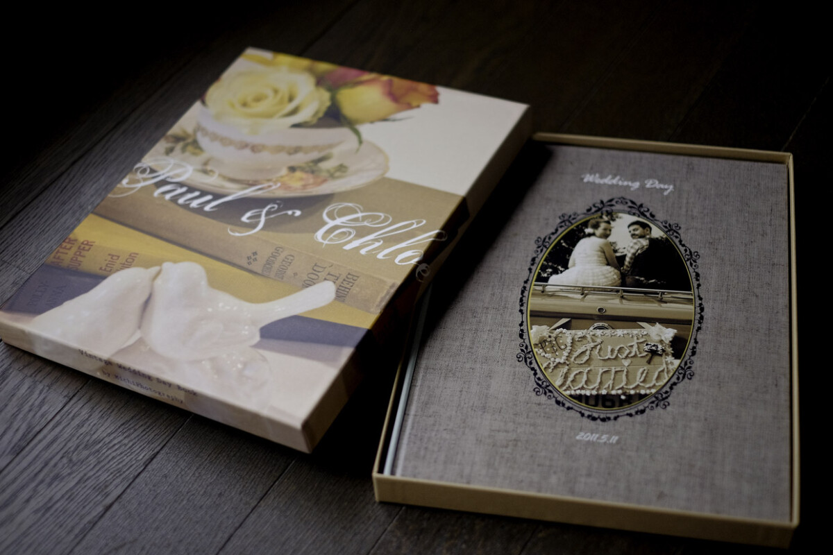 ▼「ささやかなウェディング」の1日をフォトストーリーにまとめた写真集がセットになっています(30cm正方形サイズ/全30㌻/化粧箱入り)